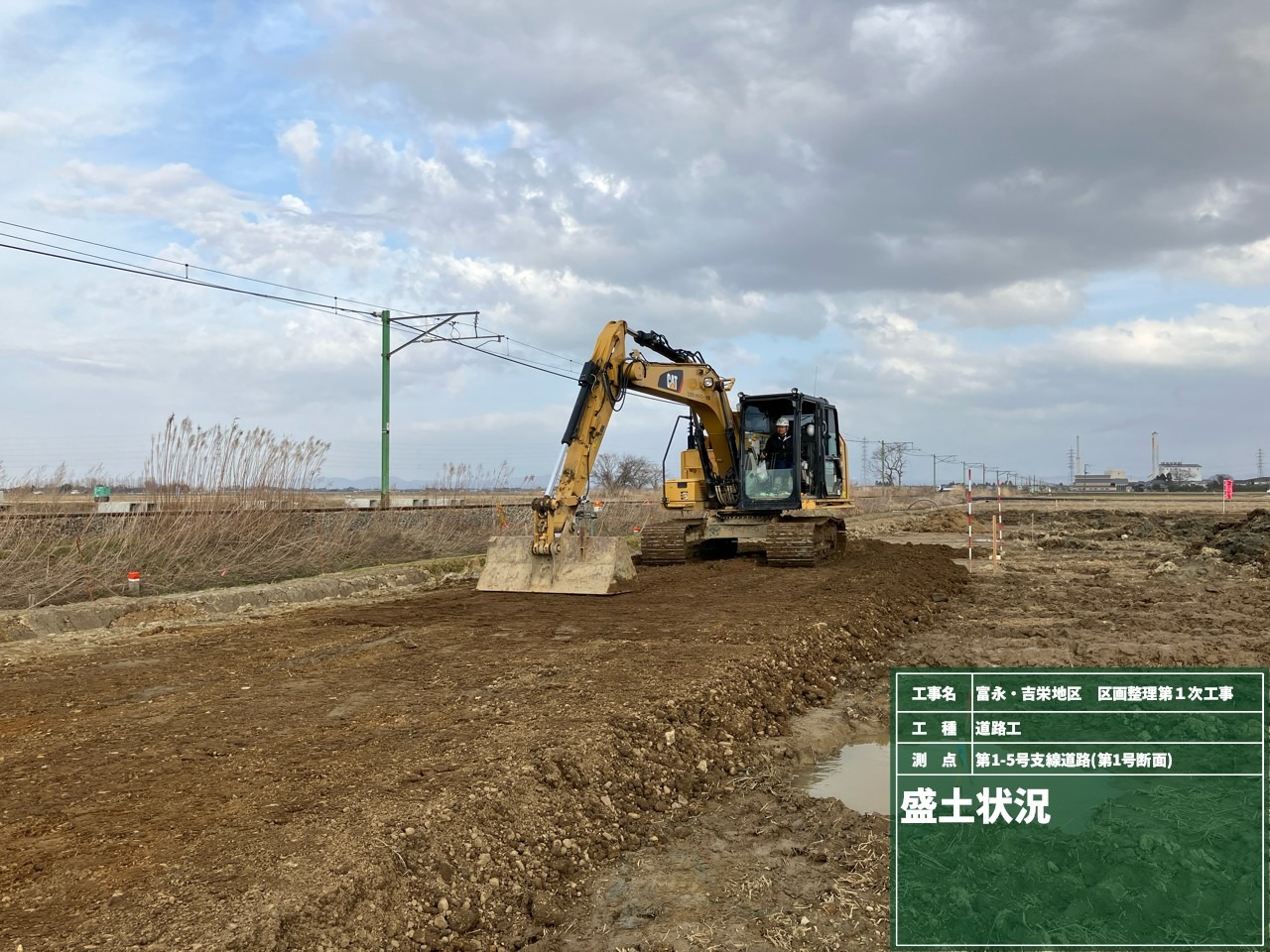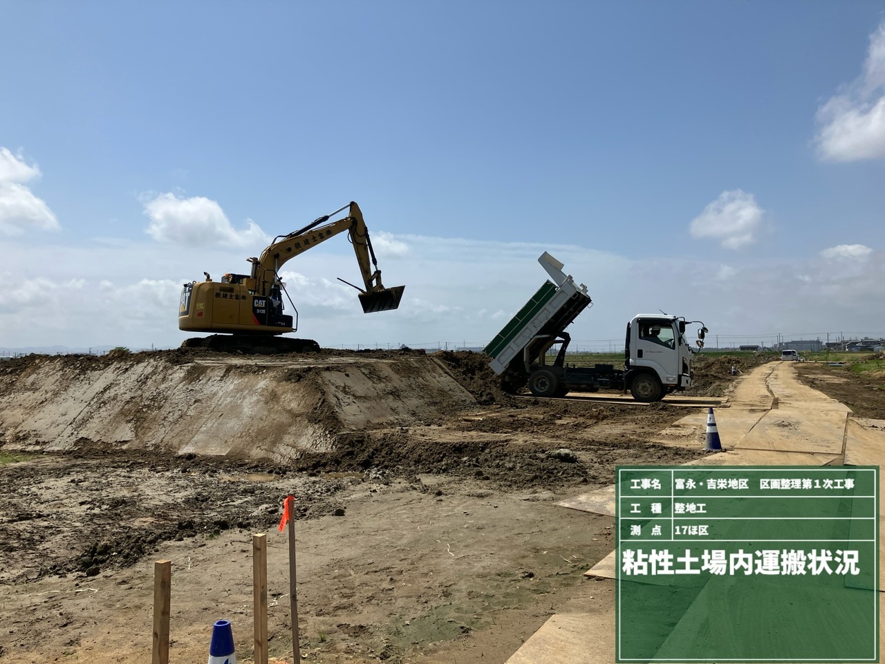 5月は排水横断工の施工、道路盛土、粘性土場内運搬を行いました。